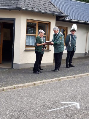 Unser Schießmeister Martin Theisen wird vom Bundesmeister Norbert Steffens mit dem Hohen Bruderschaftsorden ausgezeichnet